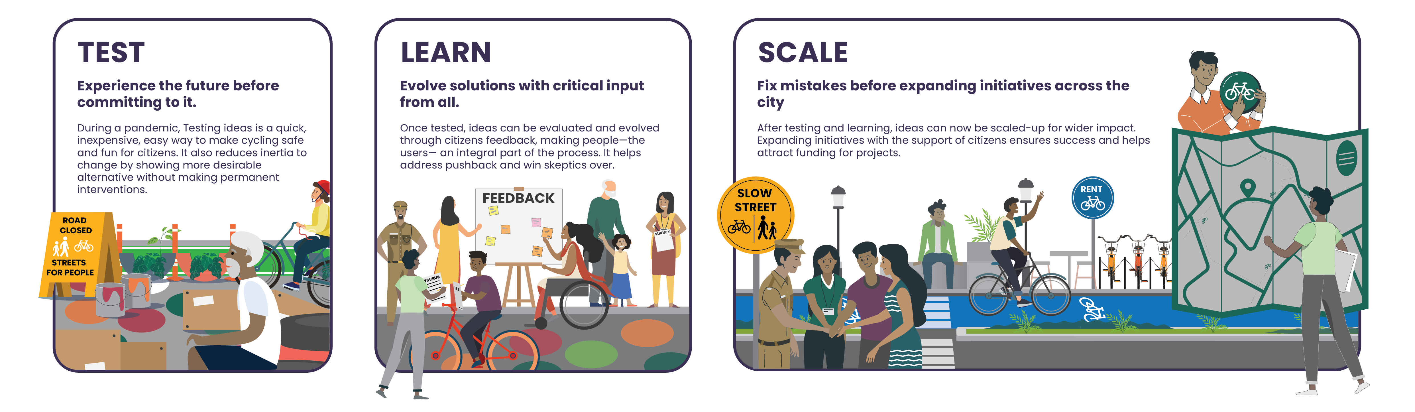 Test-Learn-Scale isn’t a new idea; applying it to the Indian context was. The India Cycles4Change challenge introduced this mantra to help cities create solutions that meet the needs of the people, while also garnering citizen support.