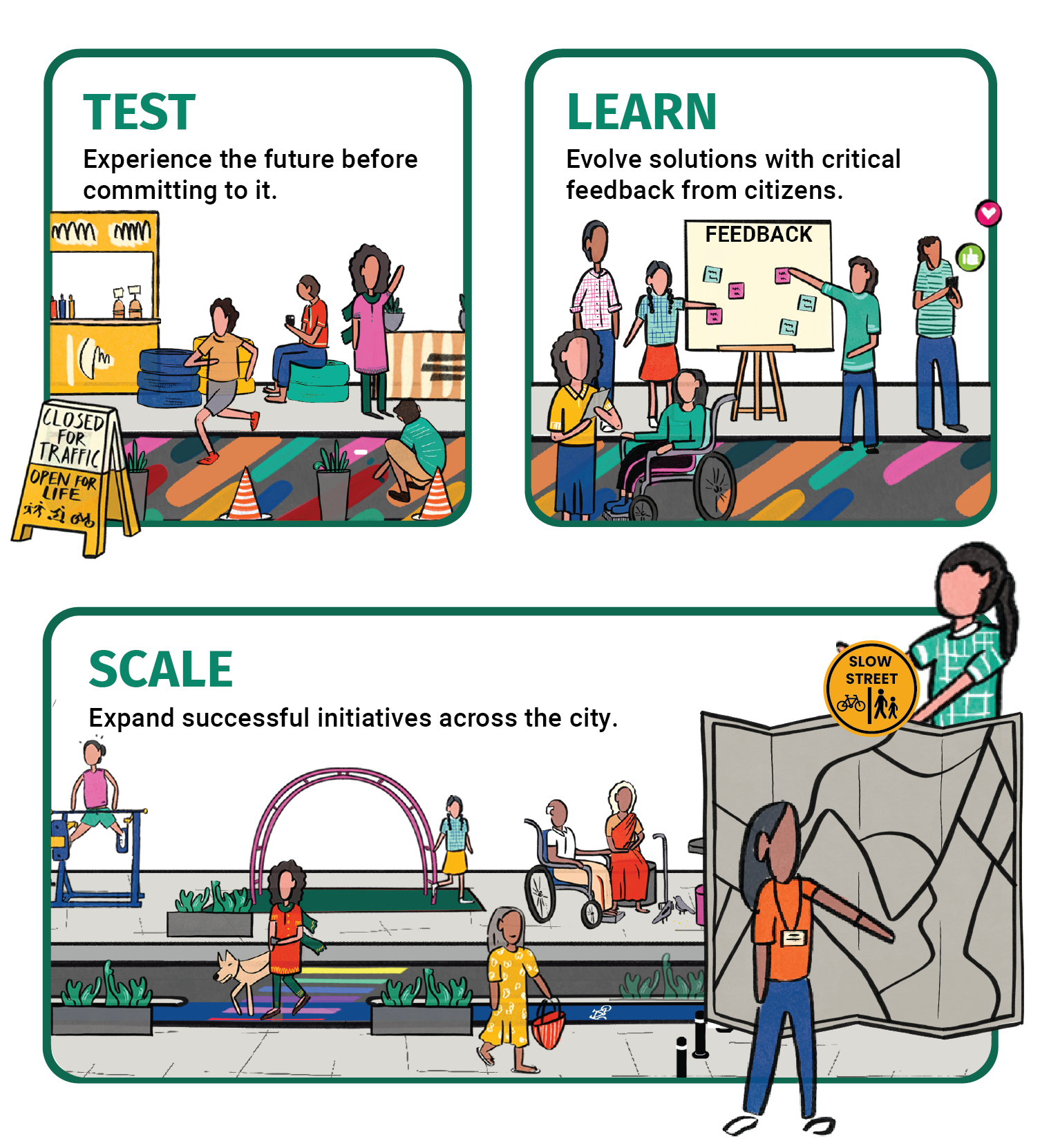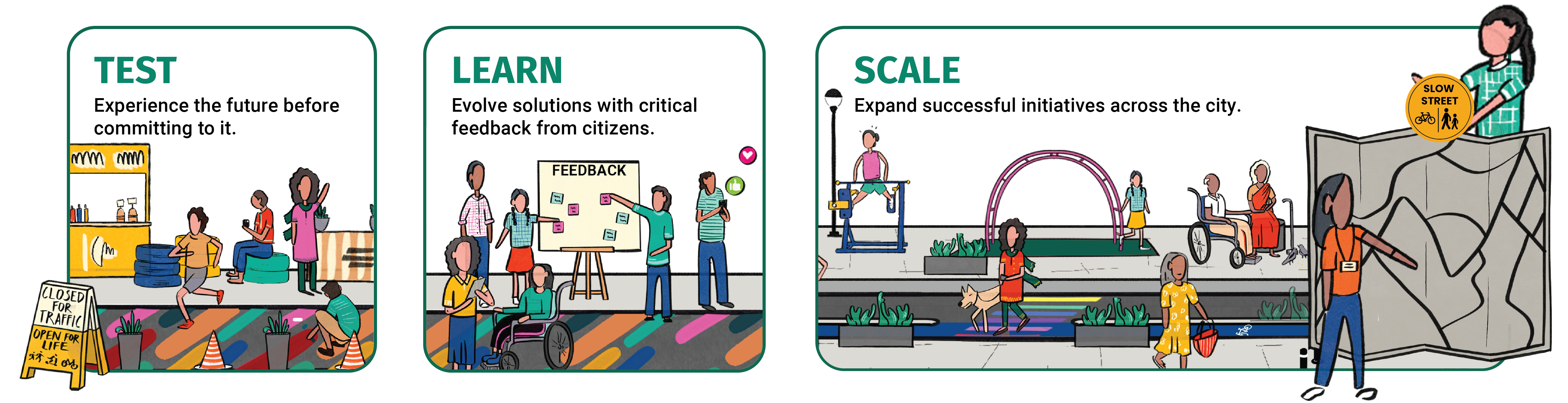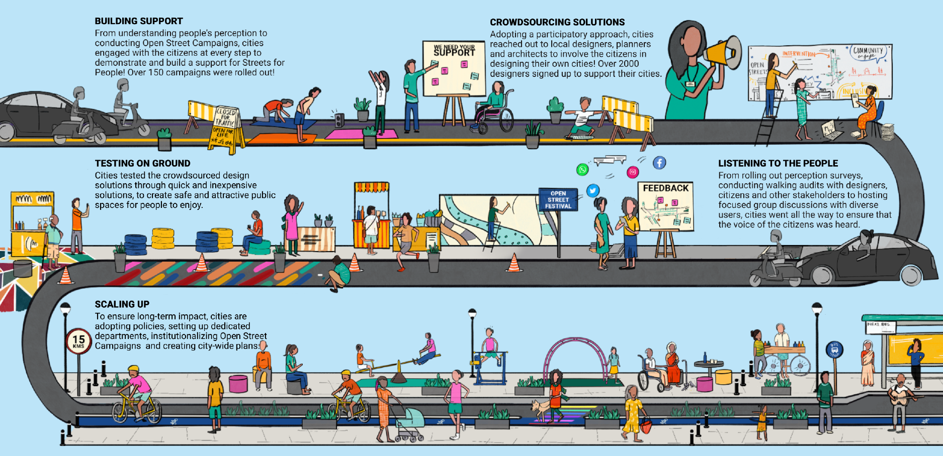 Test-Learn-Scale isn’t a new idea; applying it to the Indian context was. The Streets4People challenge introduced this mantra to help cities create solutions that meet the needs of the people, while also garnering citizen support.