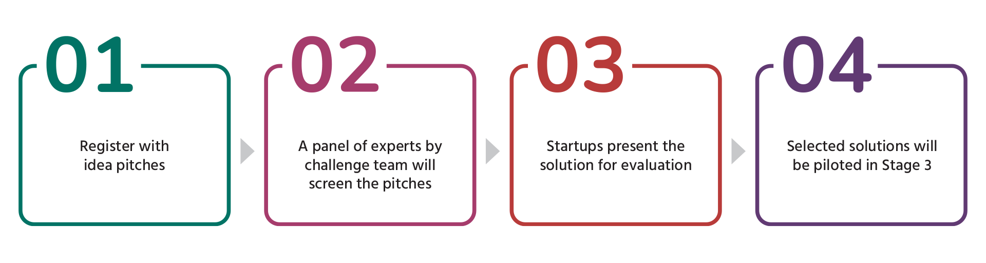 The startups interested in participating in the Challenge will complete the following activities in Stage 2 & 3.